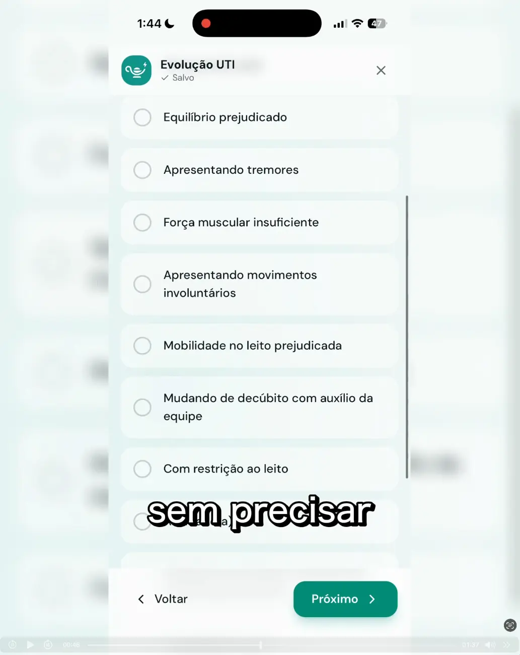 Quando aperta, a gente pula item sem perceber. Evolução incompleta é risco pra você e pro paciente.